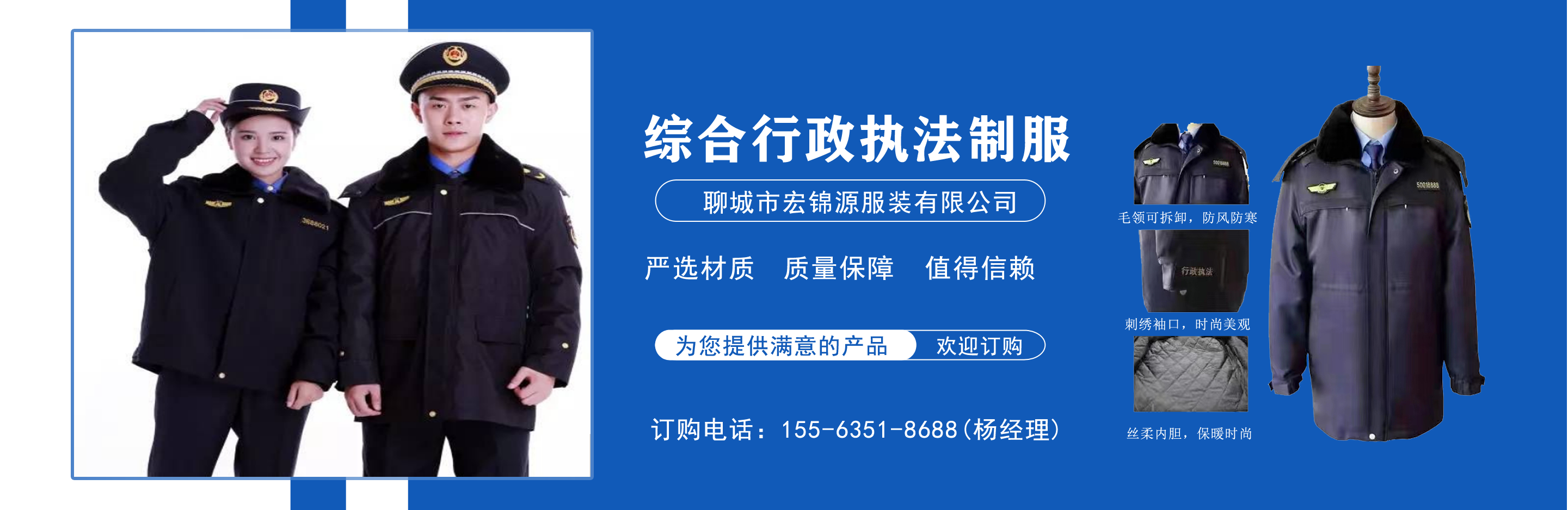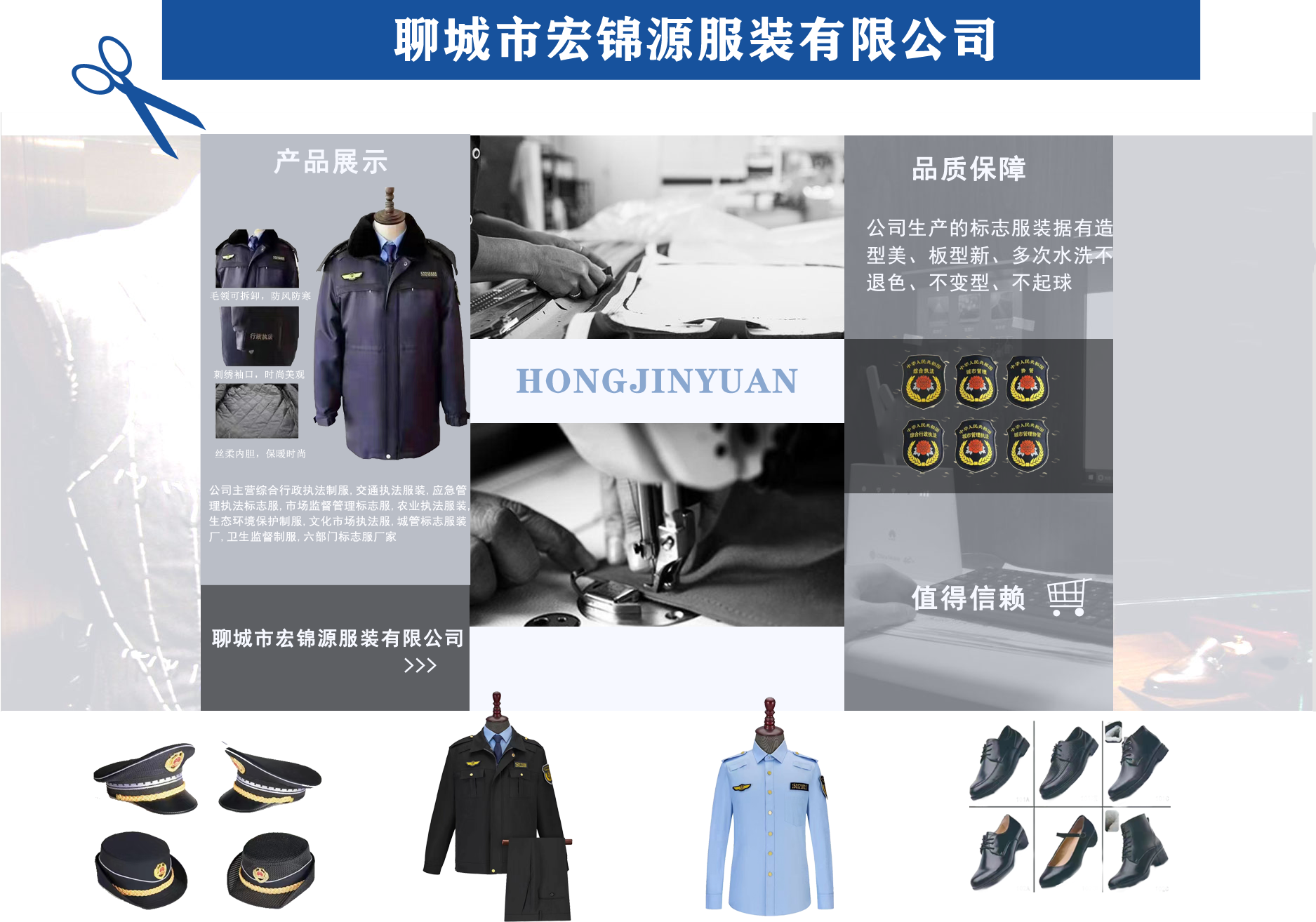 聊城市宏錦源服裝有限公司位于江北水城—山東聊城,地理位置優(yōu)越,交通便利。公司主營綜合行政執(zhí)法制服,交通執(zhí)法服裝,應急管理執(zhí)法標志服,市場監(jiān)督管理標志服,農業(yè)執(zhí)法服裝,生態(tài)環(huán)境保護制服,文化市場執(zhí)法服,城管標志服裝廠,衛(wèi)生監(jiān)督制服,六部門標志服廠家等,值得信賴! 公司生產(chǎn)的標志服裝據(jù)有造型美、板型新、多次水洗不退色、不變型、不起泡。 “認真辦事,踏實做人”是宏錦源的企業(yè)精神,我們的宗旨是:“用服務與真誠來換取你的信任與支持,互惠互利,共創(chuàng)雙贏!”我公司愿與國內外各界同仁志士竭誠合作,共創(chuàng)未來企業(yè)目標:在已選定的服飾領域中,成為行業(yè)的卓越者。 經(jīng)營理念:追求產(chǎn)品卓越,為用戶提供完美、高效的服務。...